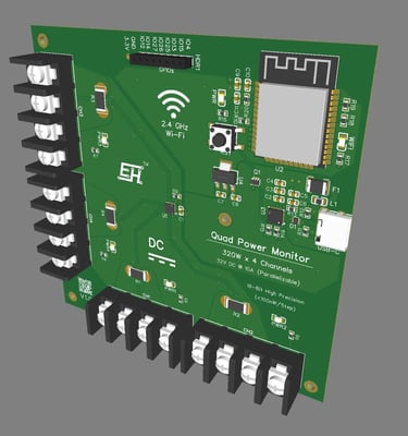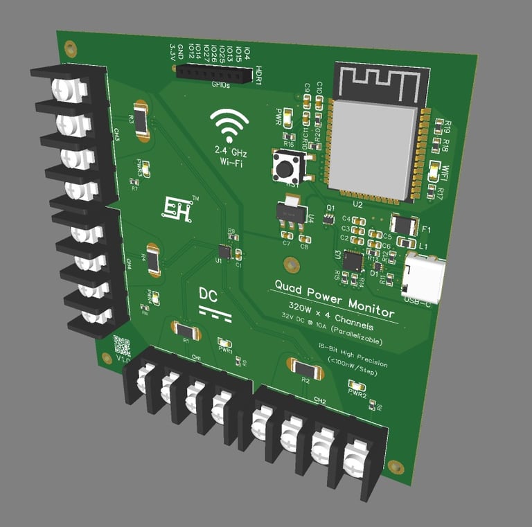 The Quad Power Monitor is a versatile 4-channel DC power monitoring device featuring 16-bit precision and built-in Wi-Fi. It allows users to own and access their data in real-time via Google Sheets logging, making it ideal for solar setups, battery systems, lab testing, and DIY electronics.